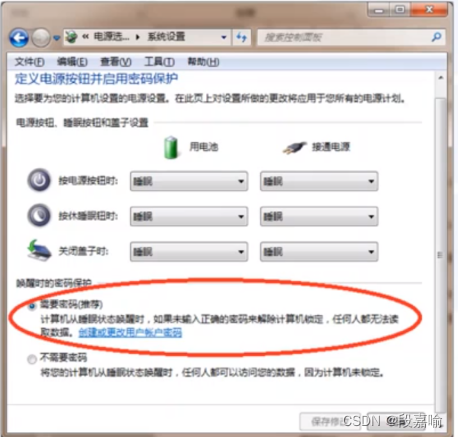设置唤醒计算机时的登录密码