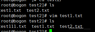 将test2目录中的test1.txt重命名为test111.txt