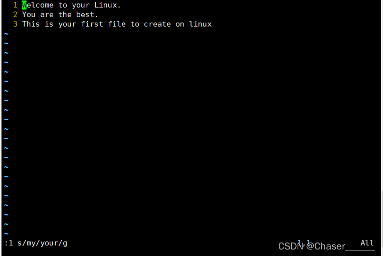 设置行号,并将文本中my替换成your,将文件另存为new_test1.txt