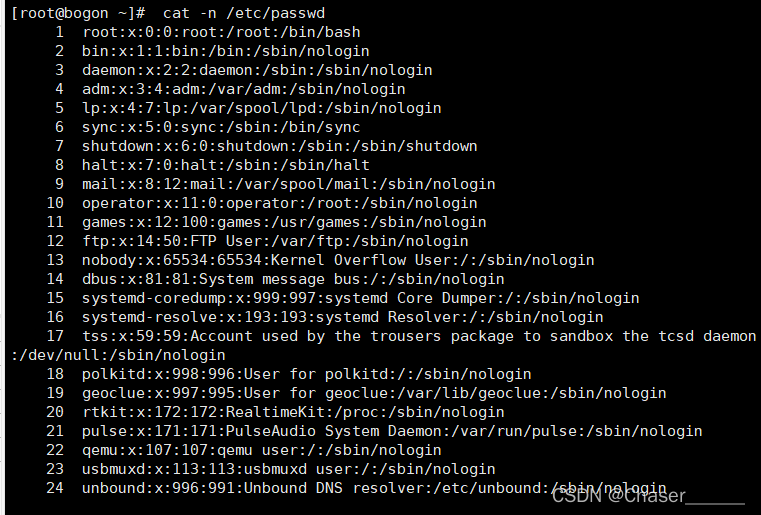 a.cat查看/etc/passwd文件内容,且输出时带行号