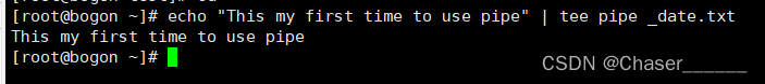 2.将echo "This is my first time to use pipe"内容输出到屏幕上,且保存到pipe_data.txt中