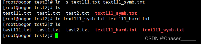 在test2目录中新建test111.txt的软链接文件 test111_symb.txt