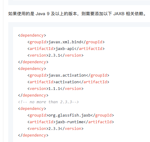 如果你用的是Java9级以上的版本,则需要在引入以下依赖。