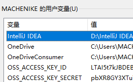 第二种就是配置好环境变量(记得重启IDE),然后就可以了(教程如下图),我们在高级配置-配置访问凭证-使用RAM用户的AK(AccessKey)跟着教程来就好了,检查环境变量我们可以直接在编辑用户环境变量中查看我们的环境变量是否正确配置好。
