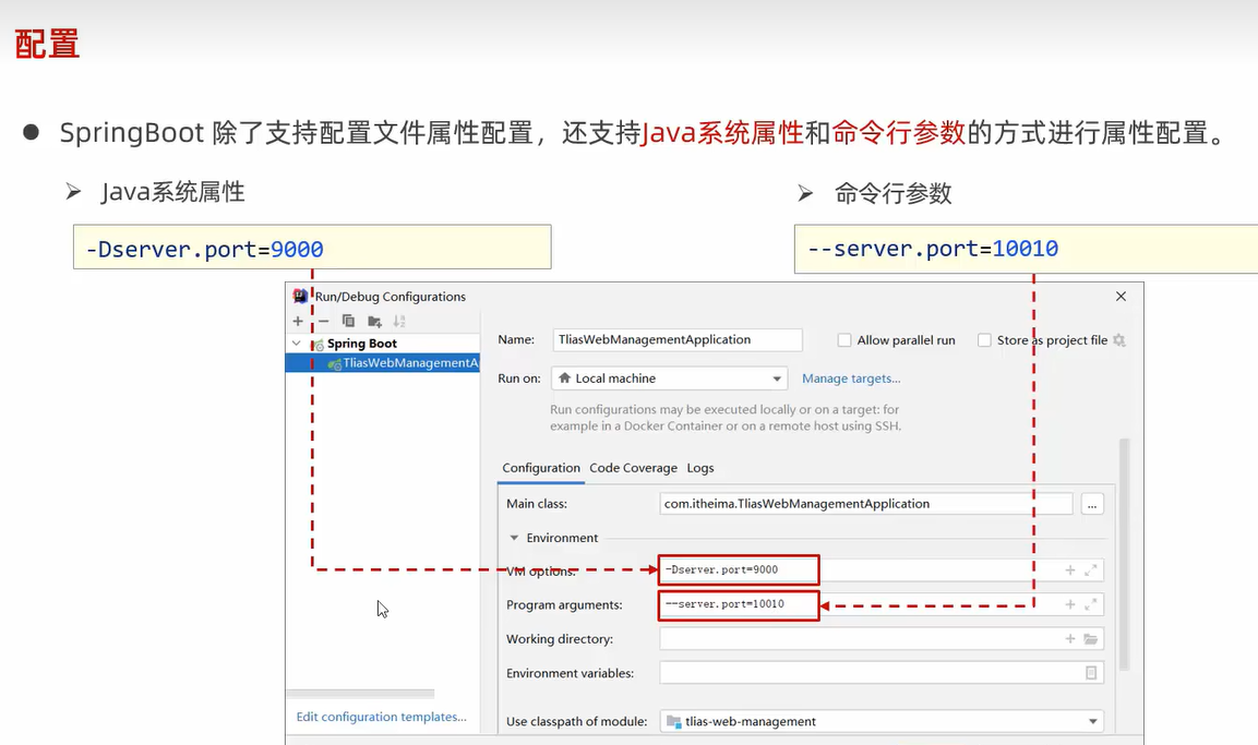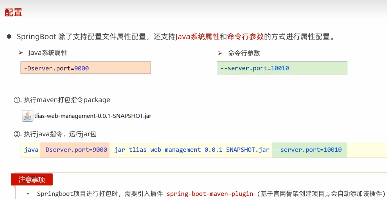 除此之外,springboot还支持Java系统属性和命令行参数来配置。