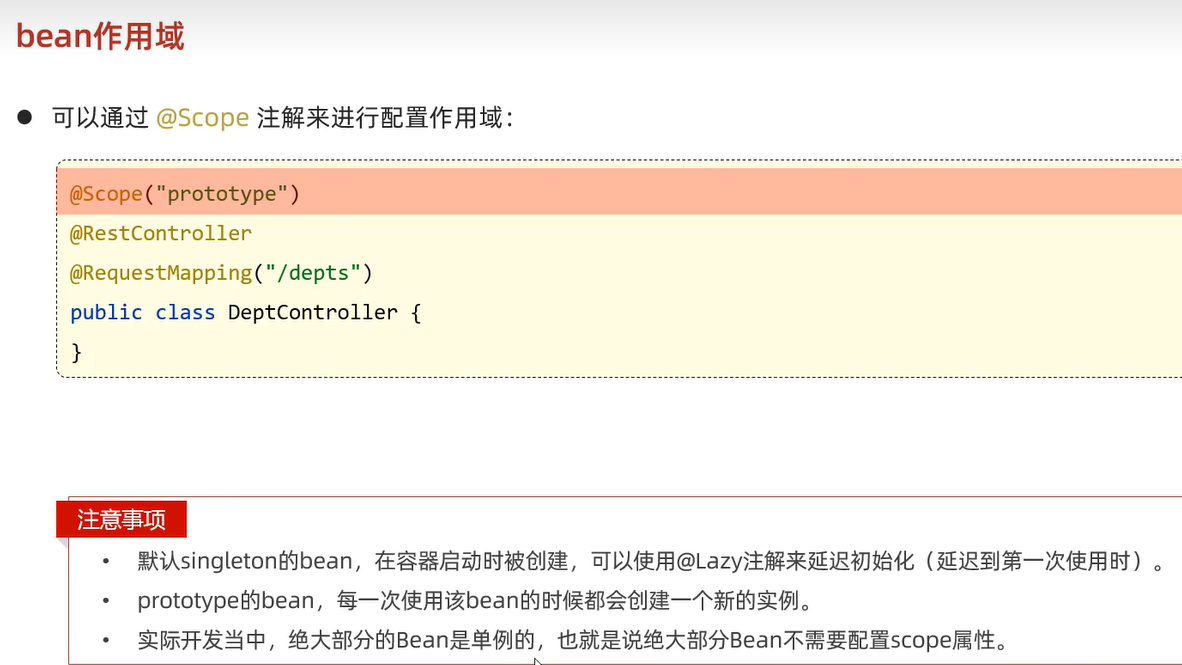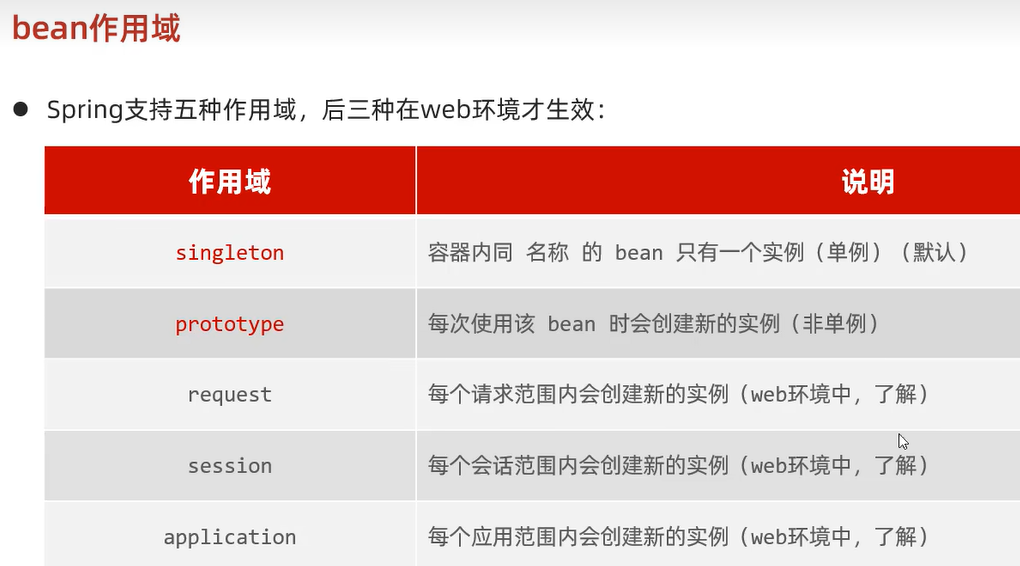 在开发中大多数Bean是单例的,无需配置scope属性。