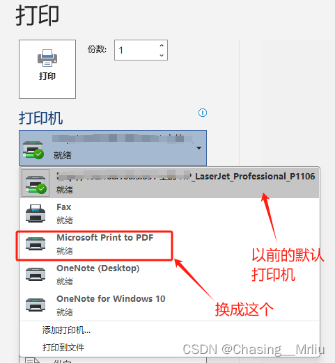 在微软的论坛上看到一位老哥留言是默认打印机设置的问题,然后想起自己Word也提示在连接打印机,所以修改了默认打印机。