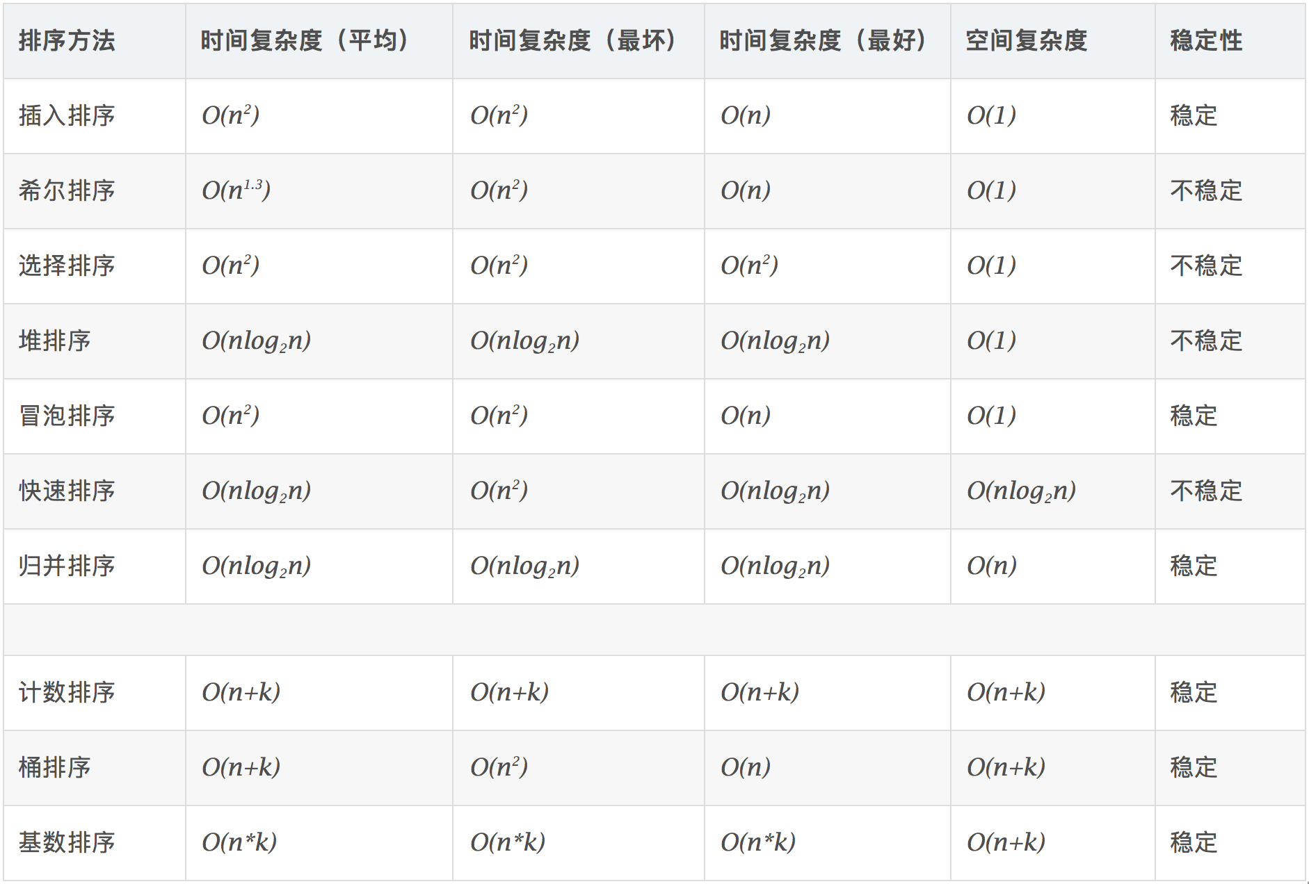 - 比较类排序:通过比较来决定元素间的相对次序,由于其时间复杂度不能突破O(nlogn),因此也称为非线性时间比较类排序。