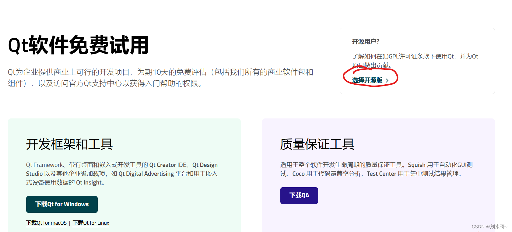 点击页面中的“选择开源版” , 之后页面往下拉,找到下载按钮,点击下载安装程序