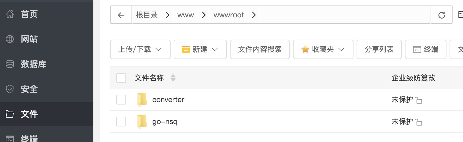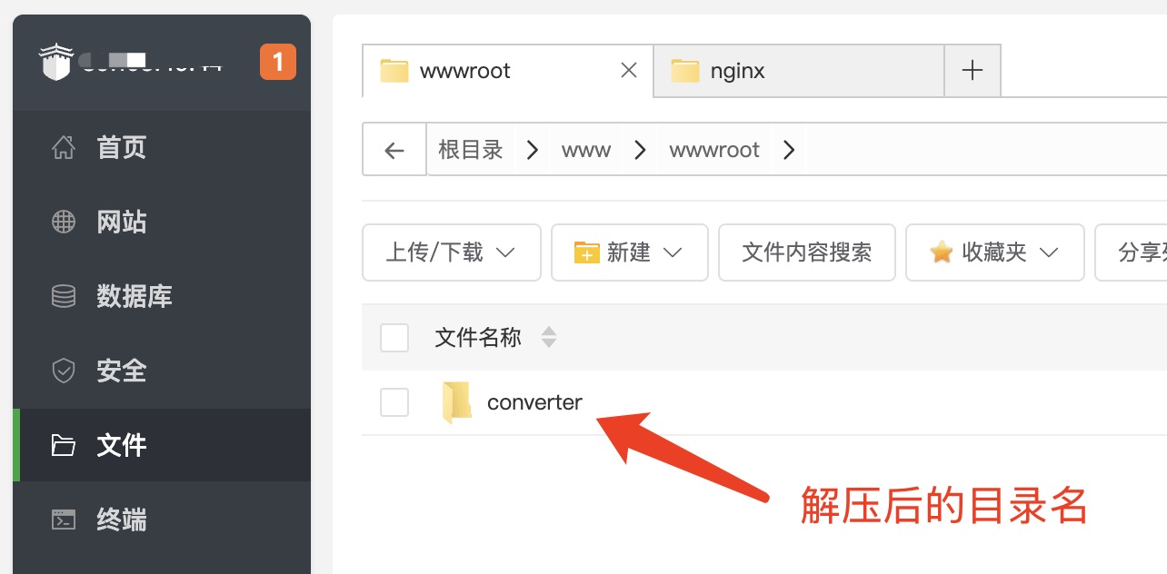 注意,BT安装后会生成/www/wwwroot目录,下面我们将程序放置在此目录下,而非官方文档中的/var/www目录。