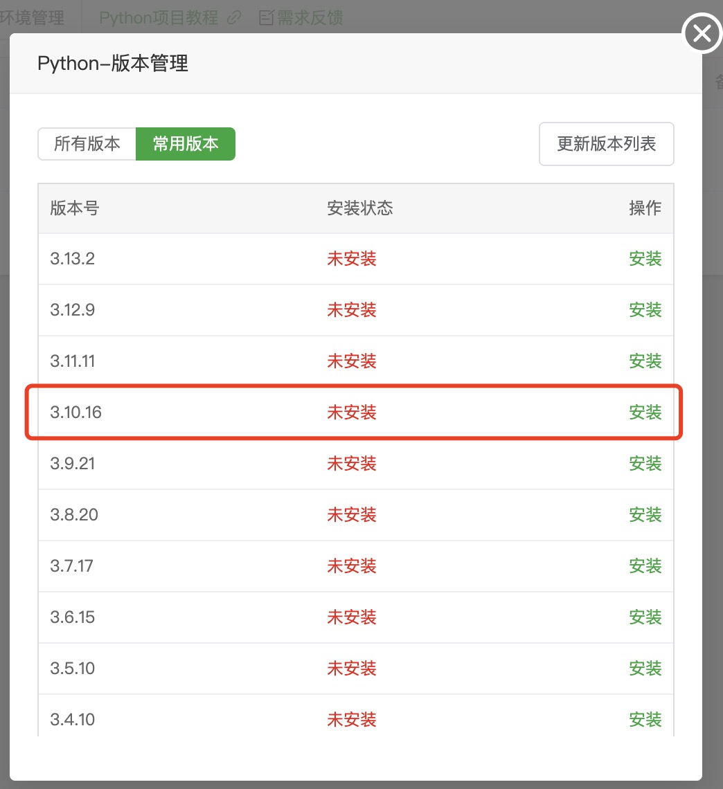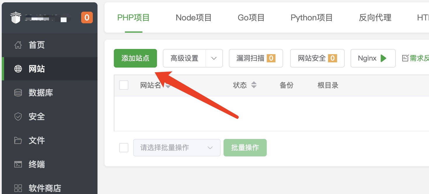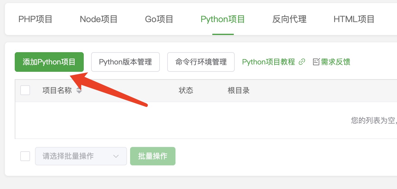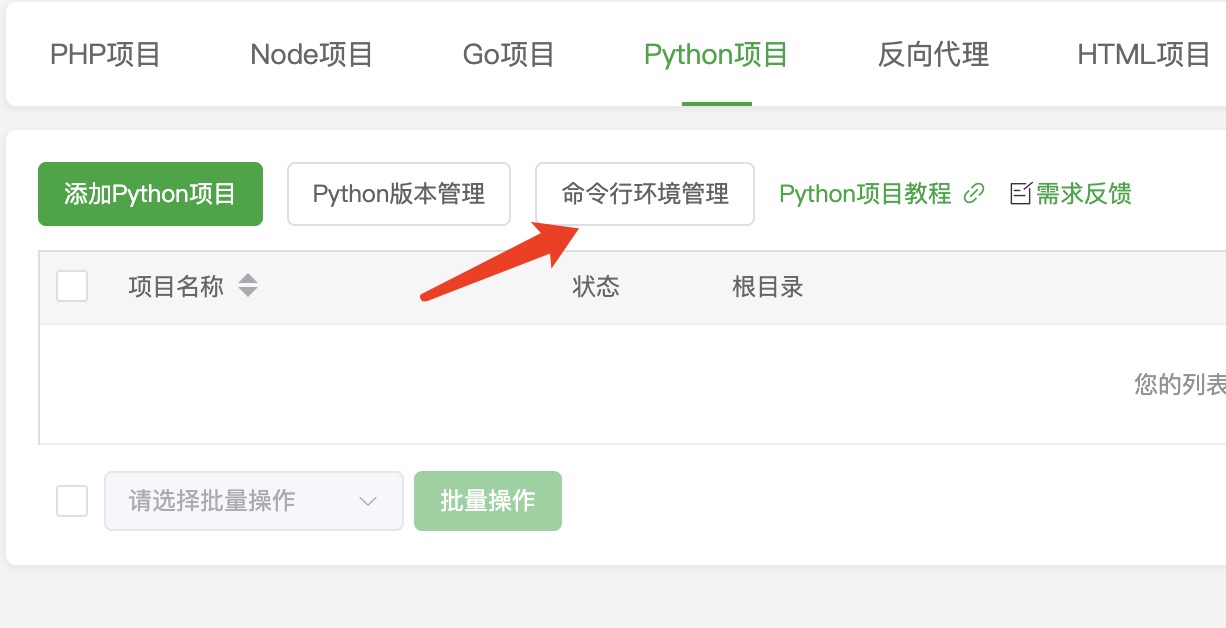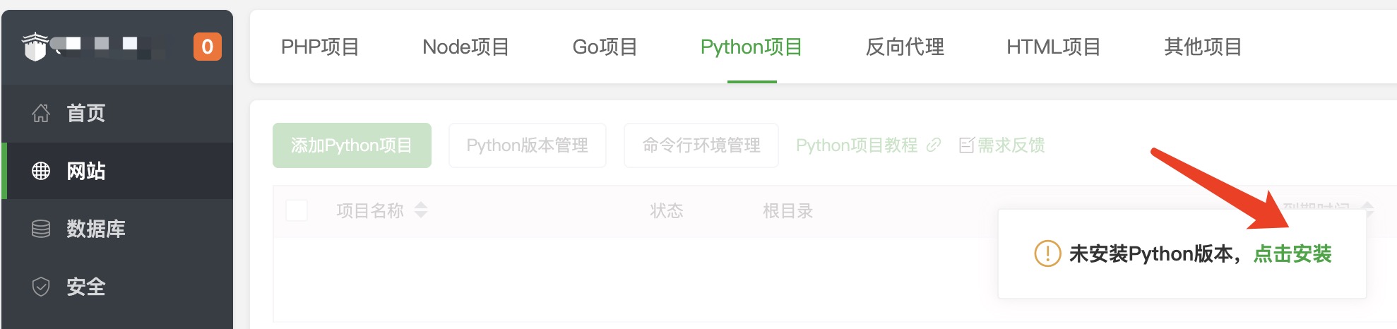 - 进入宝塔的网站管理功能模块,安装Python运行环境