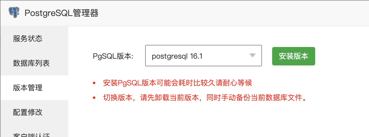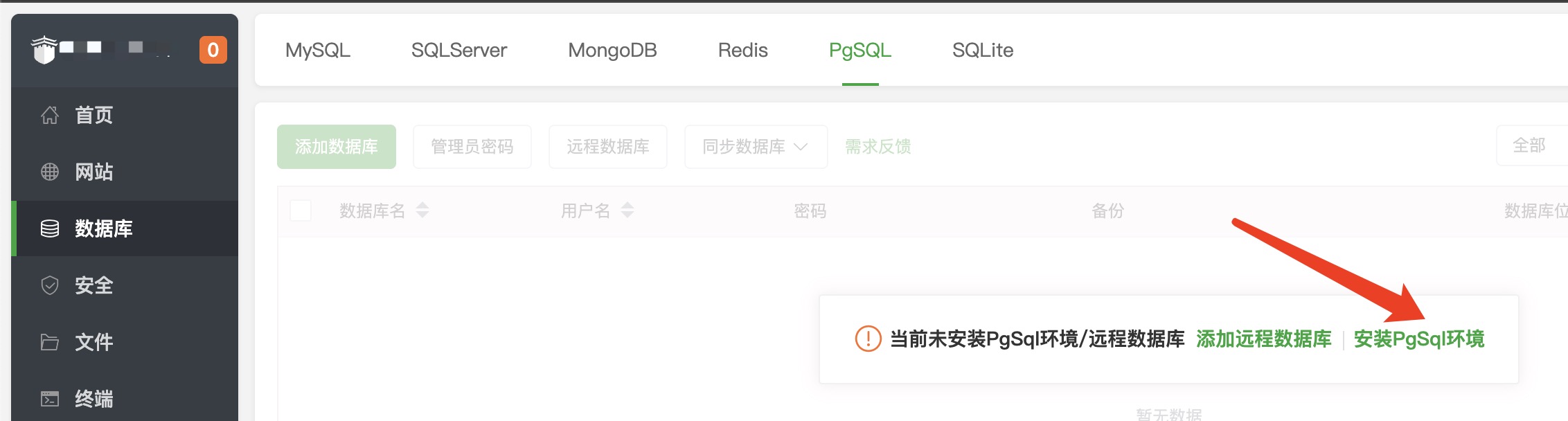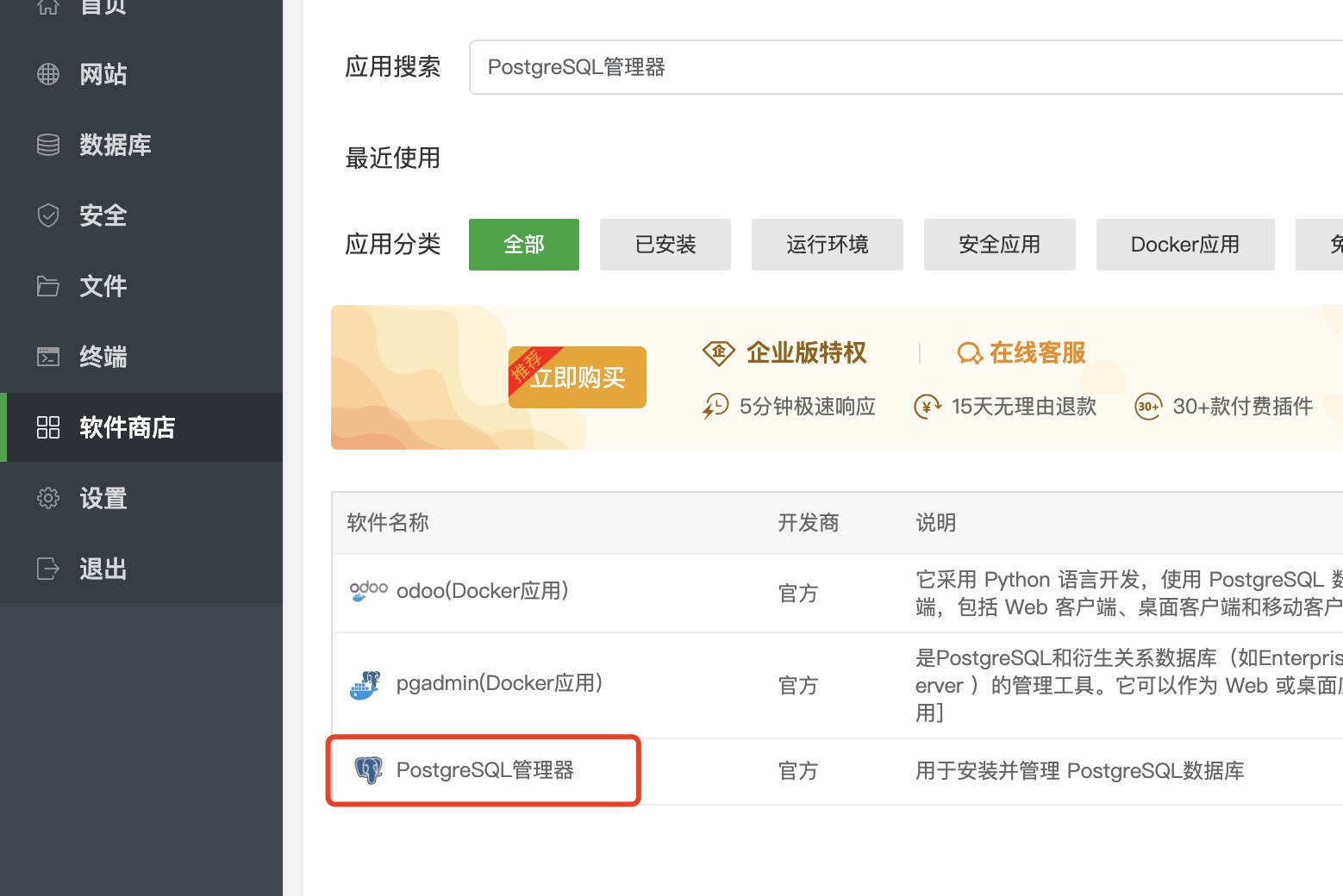 - 在宝塔软件商店中安装PostgreSQL管理器