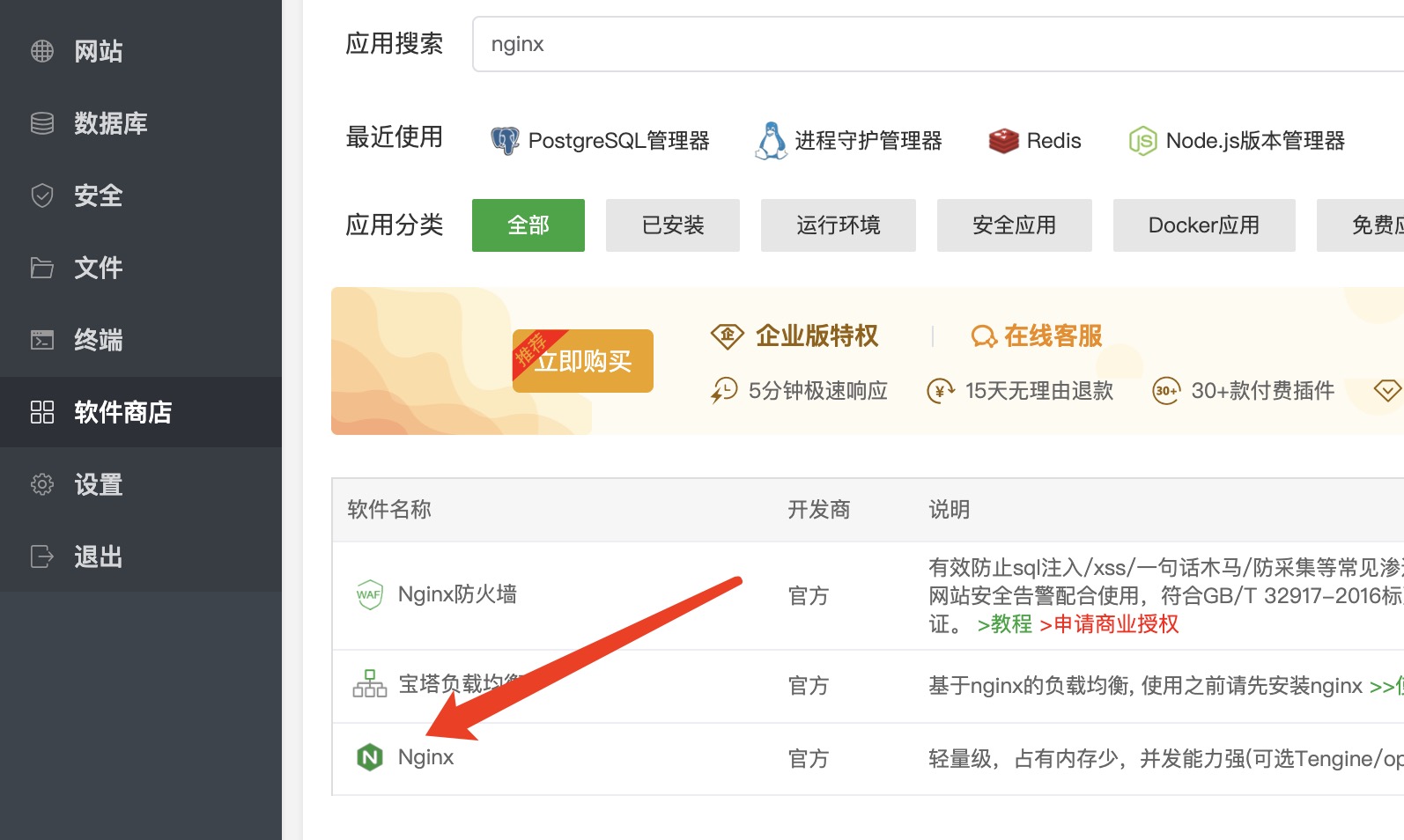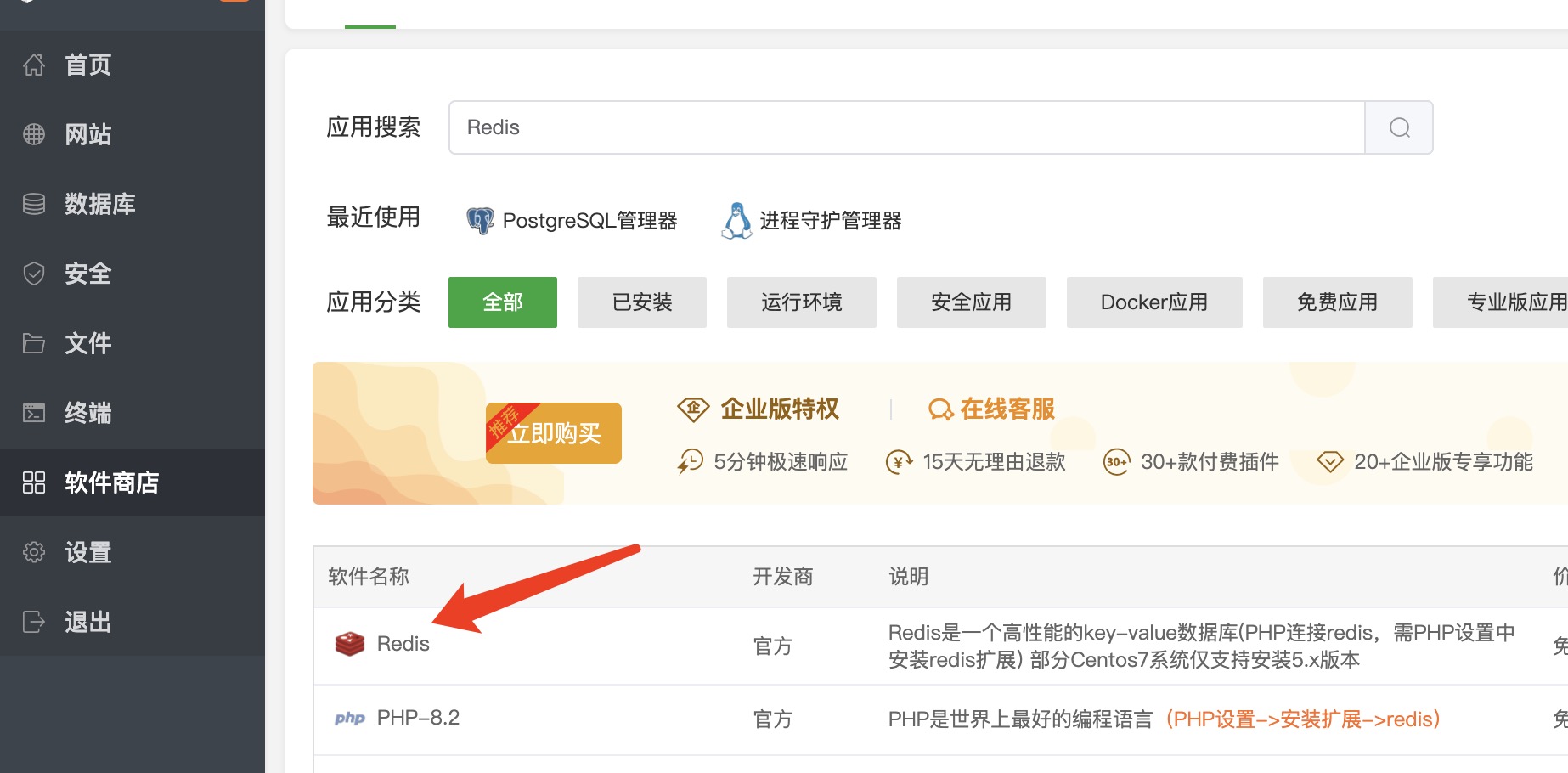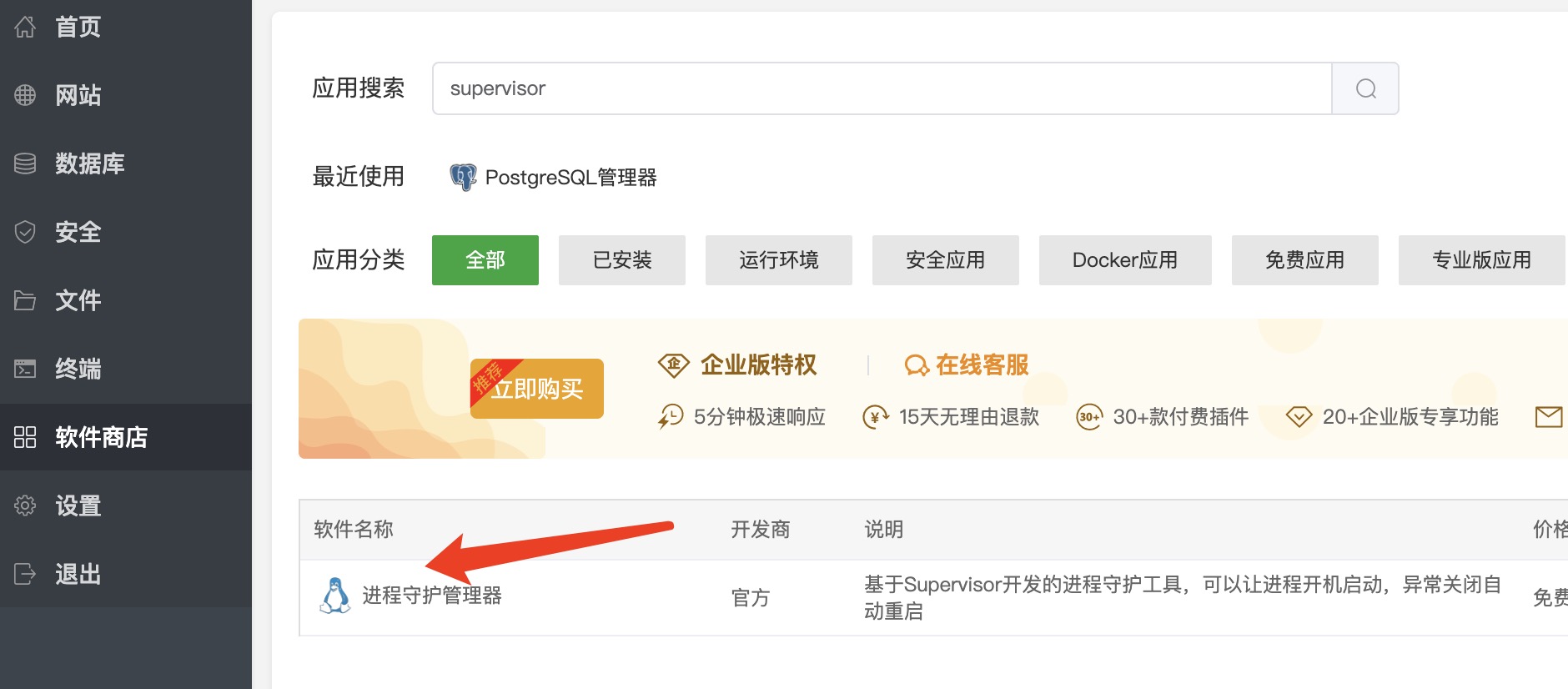 - 在宝塔软件商店中安装PostgreSQL管理器