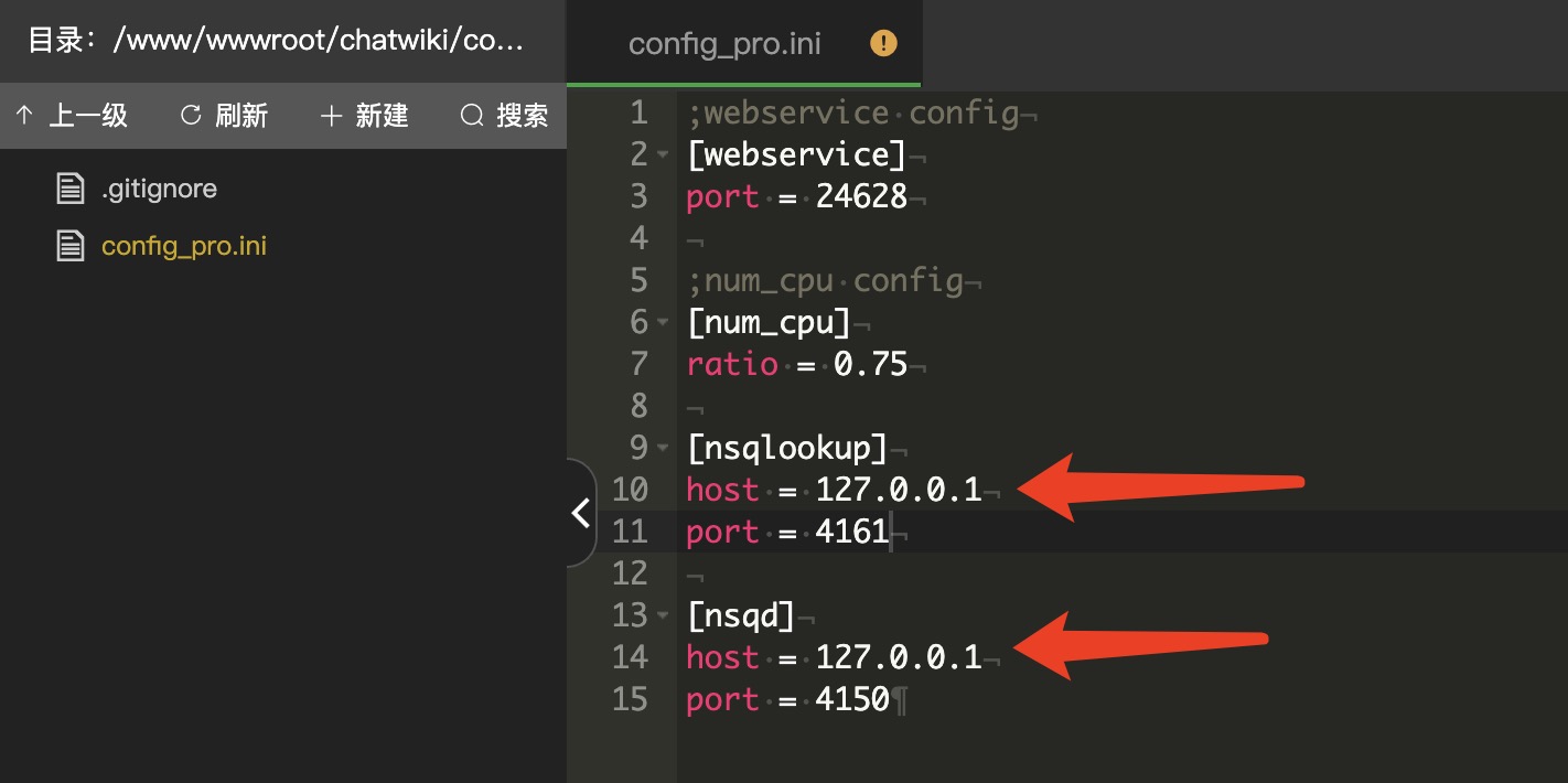 - 修改/www/wwwroot/chatwiki/configs/chatwiki/config_pro.ini文件内容