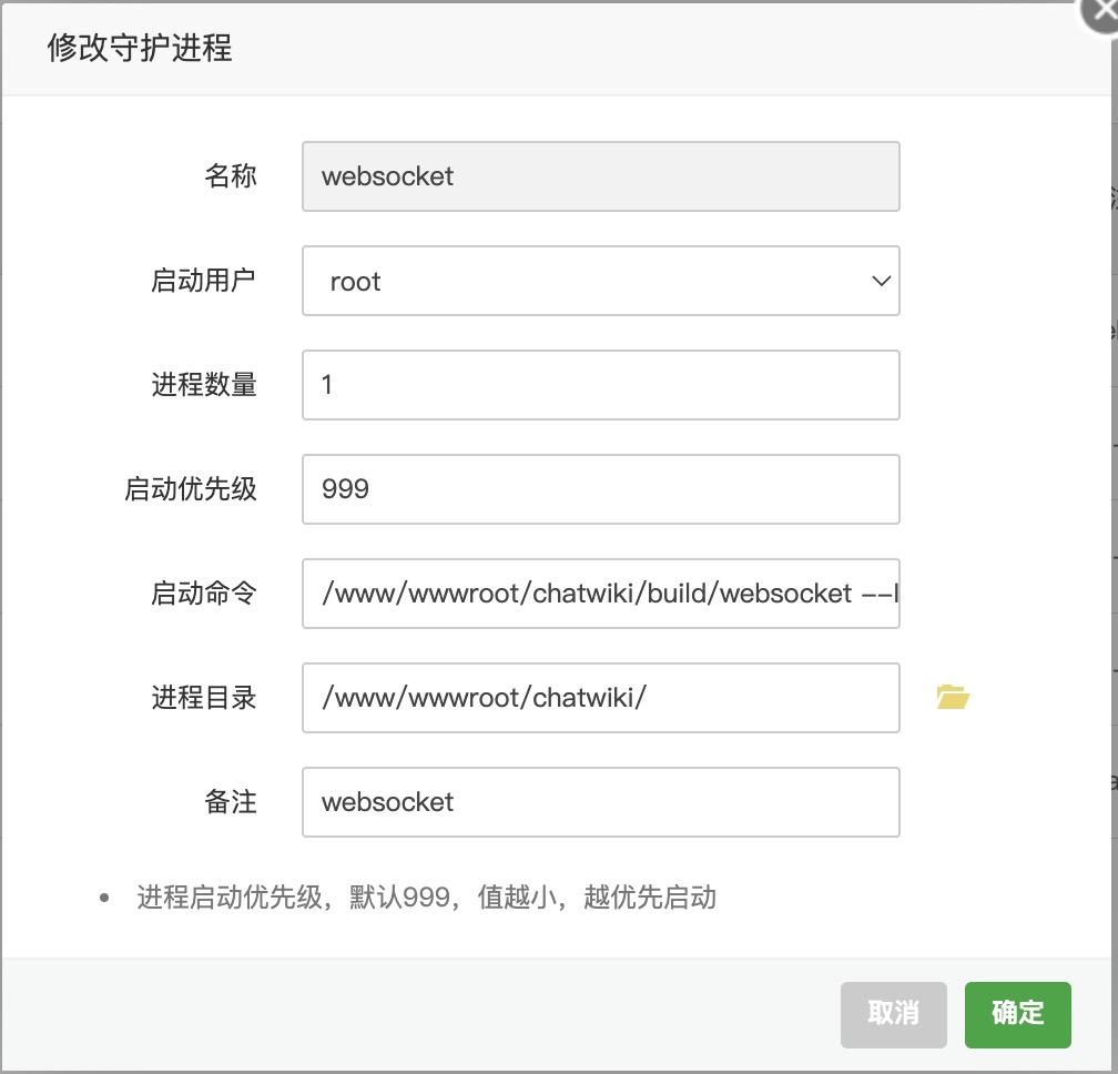 - 修改/www/wwwroot/chatwiki/configs/websocket/config_pro.ini项目配置参数