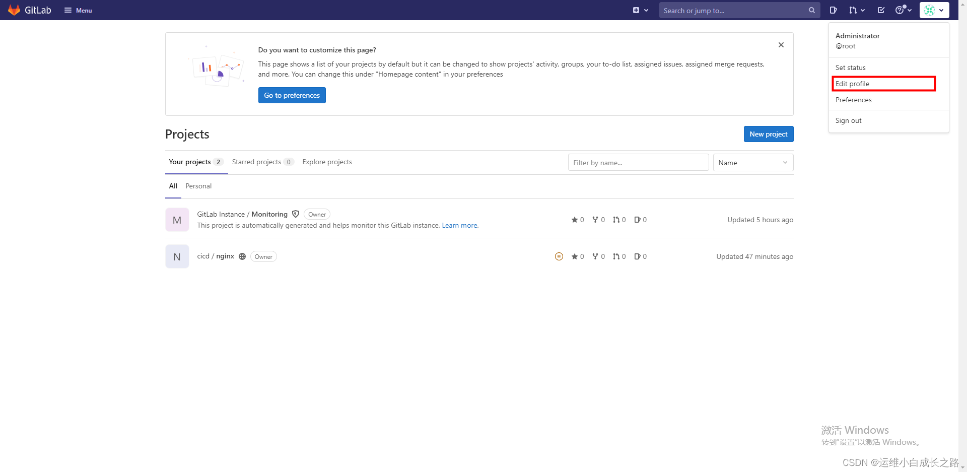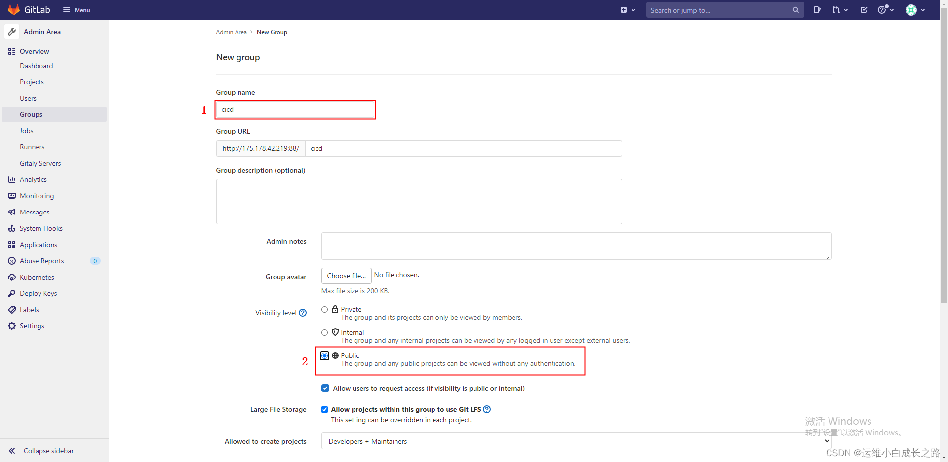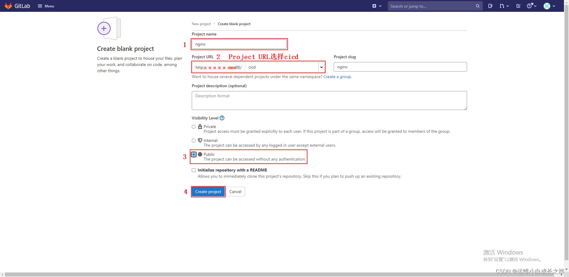 首先登录gitlab的web界面,先在gitlab上创建一个组,然后再创建一个项目
