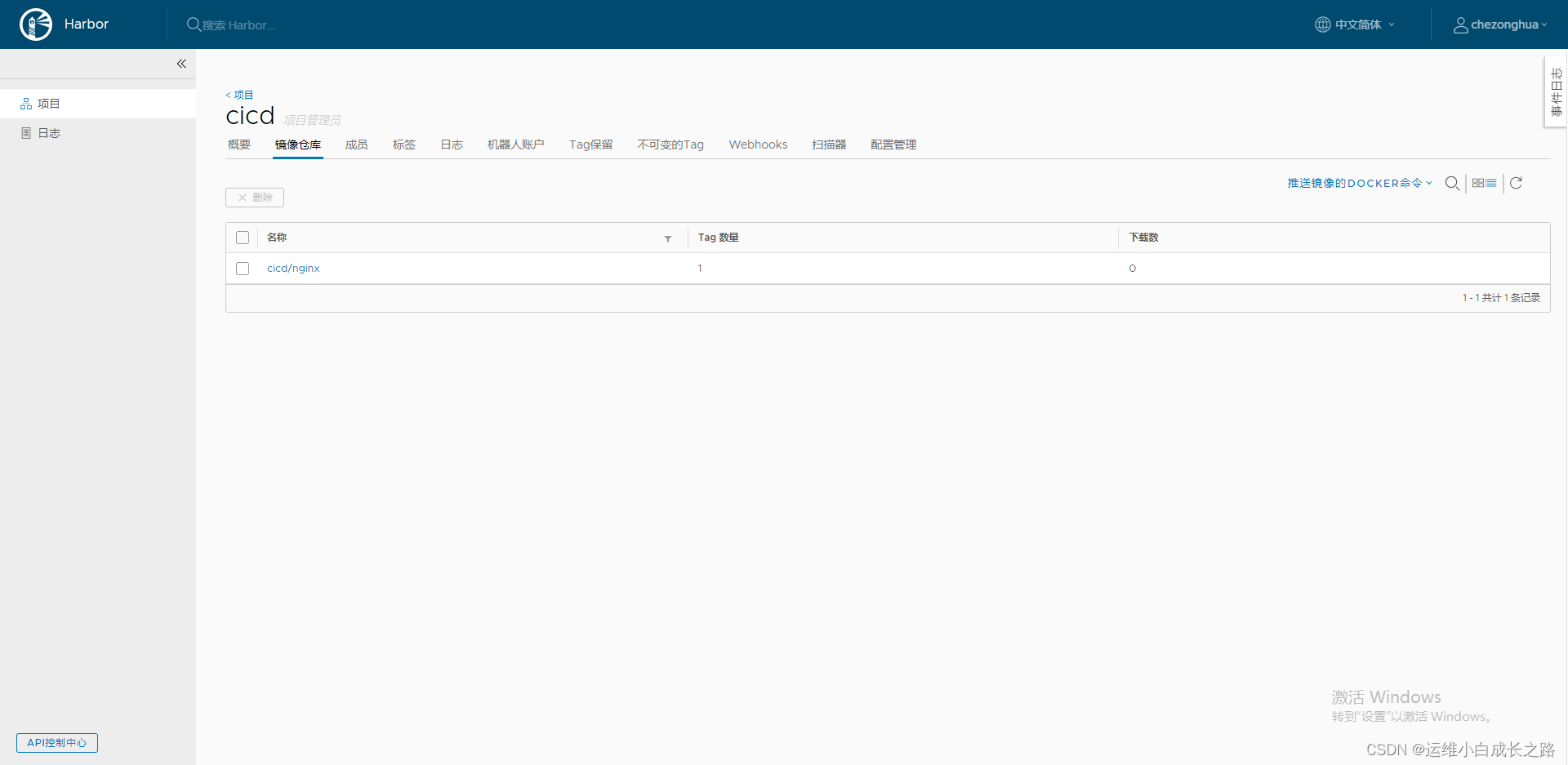 登录harbor的web界面,即可看见刚刚构建好的镜像
