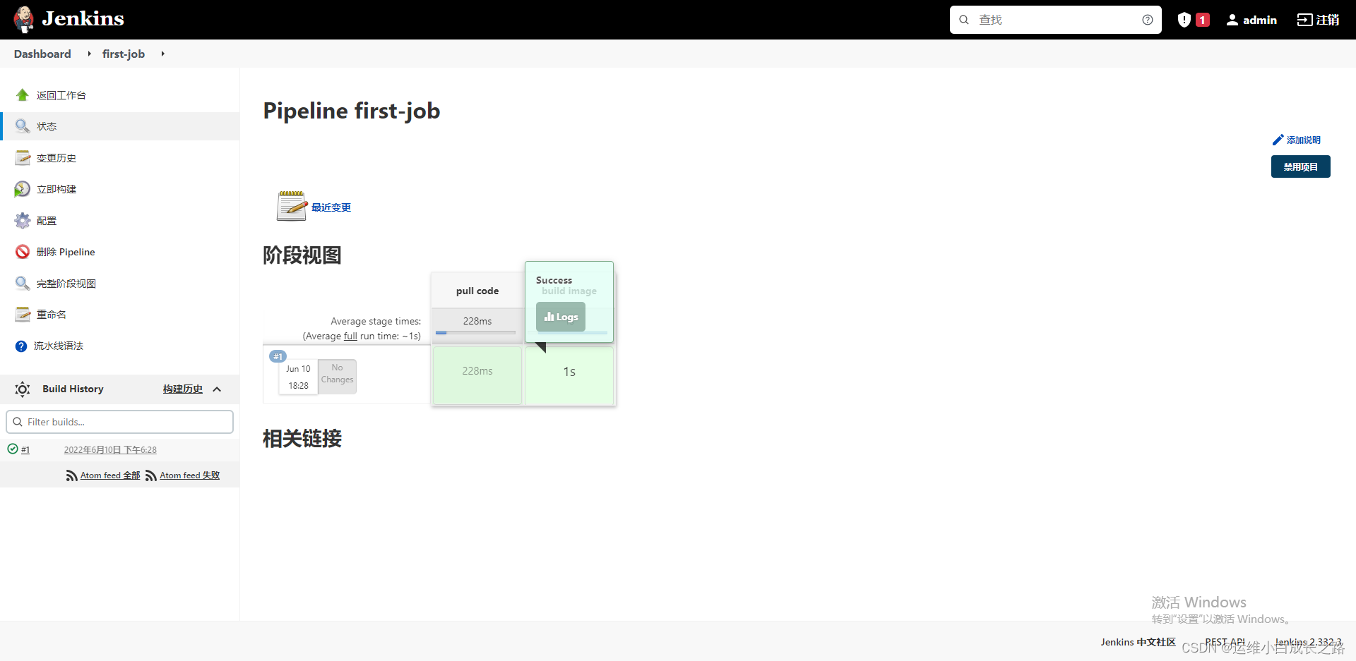 点击立即构建后,即可构建成功,实际应该需要构建10分钟这样,我这里之所以那么快,是因为我之前构建过,有缓存