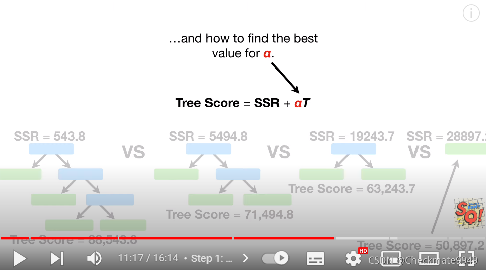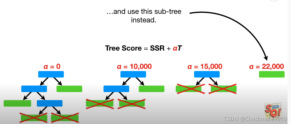 第三步:寻找最合适的Alpha值,选择test score最小的subtree。