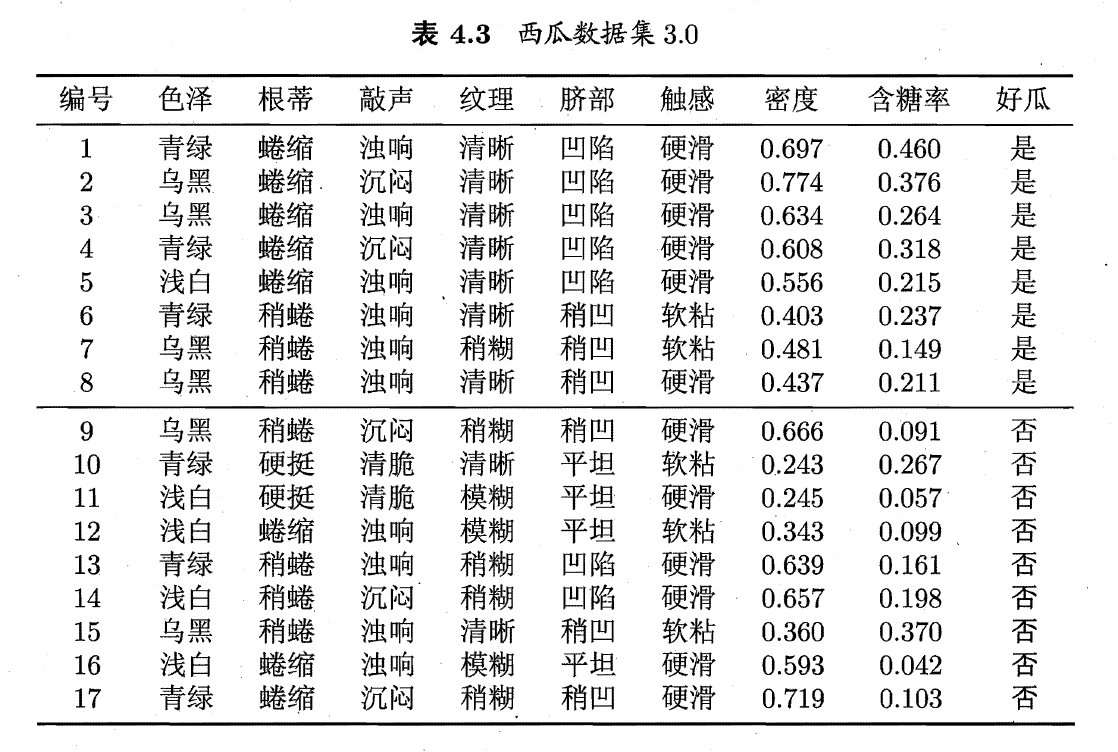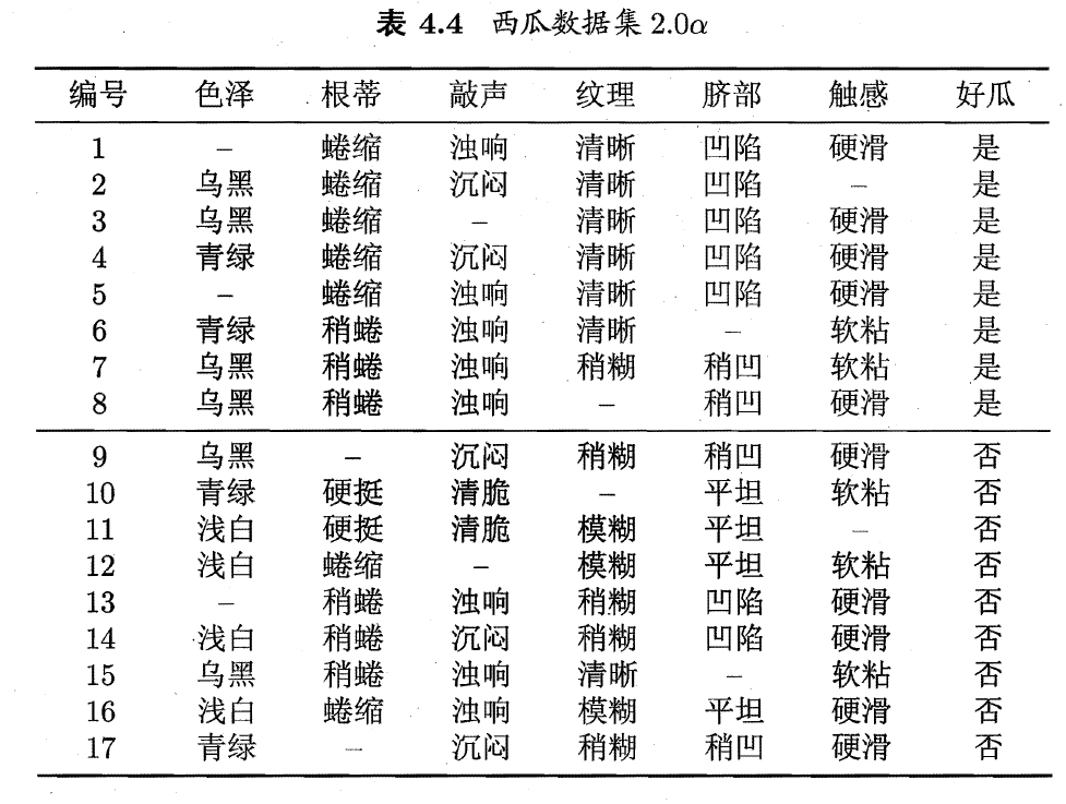 1、若西瓜数据集存在缺失值,如下: