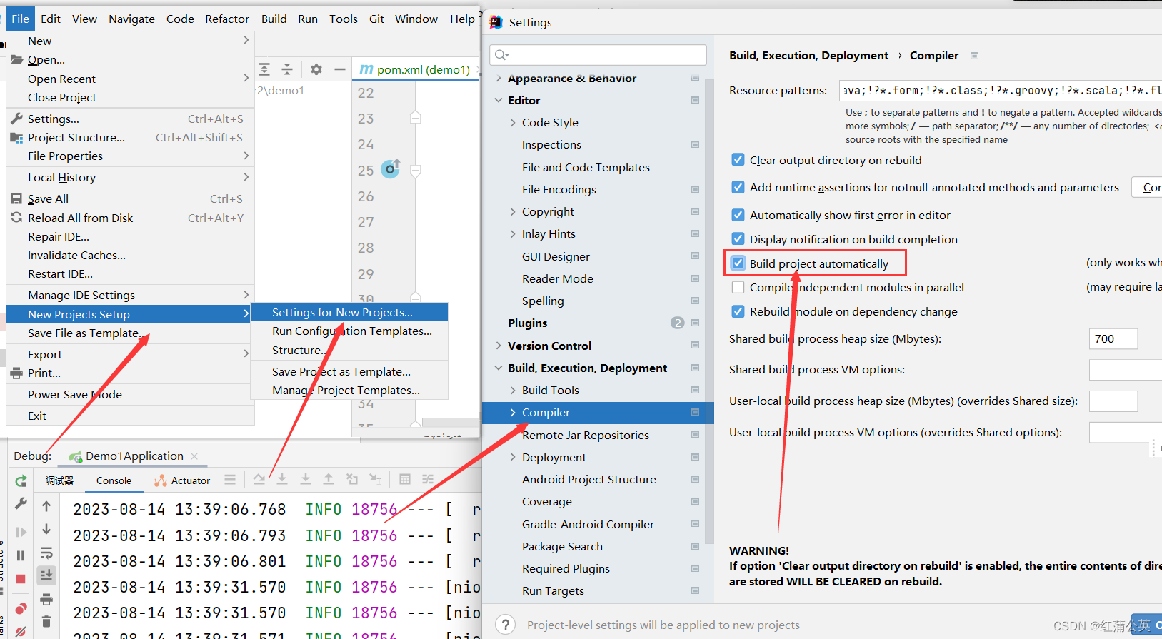 2.在idea设置中开启项目的自动编译(共两个地方)