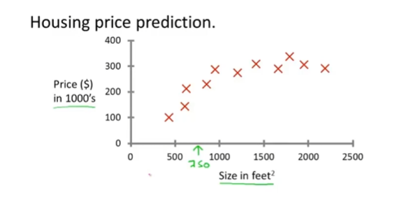 监督学习是指我们给算法一个数据集,其中包含了正确答案,而我们想要算法通过这个来输出更多数据的正确答案。在上述所说的例子中,房子的实际售价就是正确答案,而预估售价就是我们想