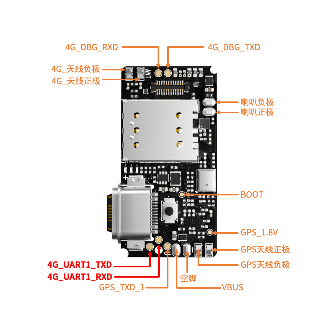 如上图所示,如果直接使用Air201上的main_uart串口,需要在4G_UART1_RXD和4G_UART1_TXD处引出线;