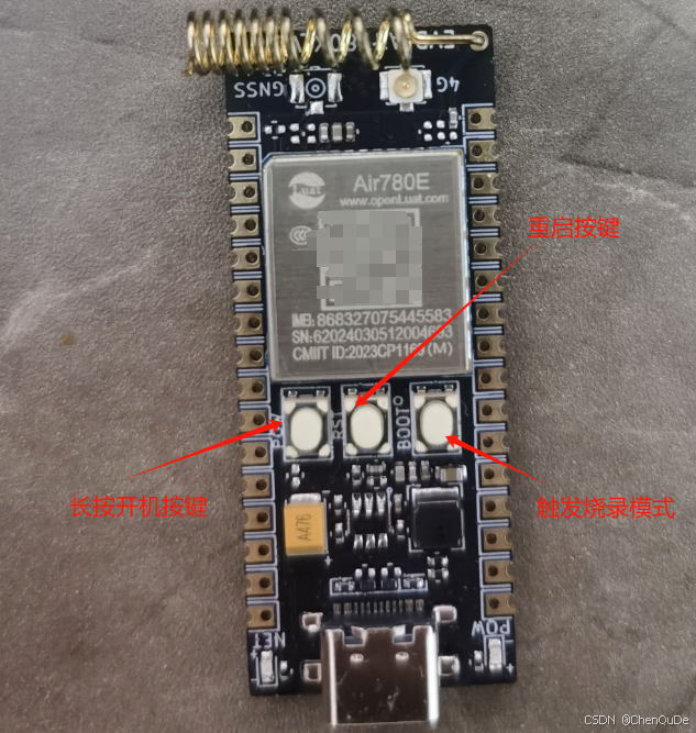 当我们模块开机时,按着BOOT键然后点按重启键即可。