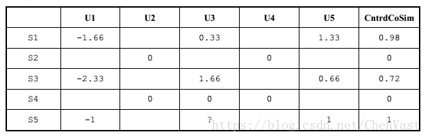 最右边的列是其他每行相对行 S5 的中心化余弦相似度。