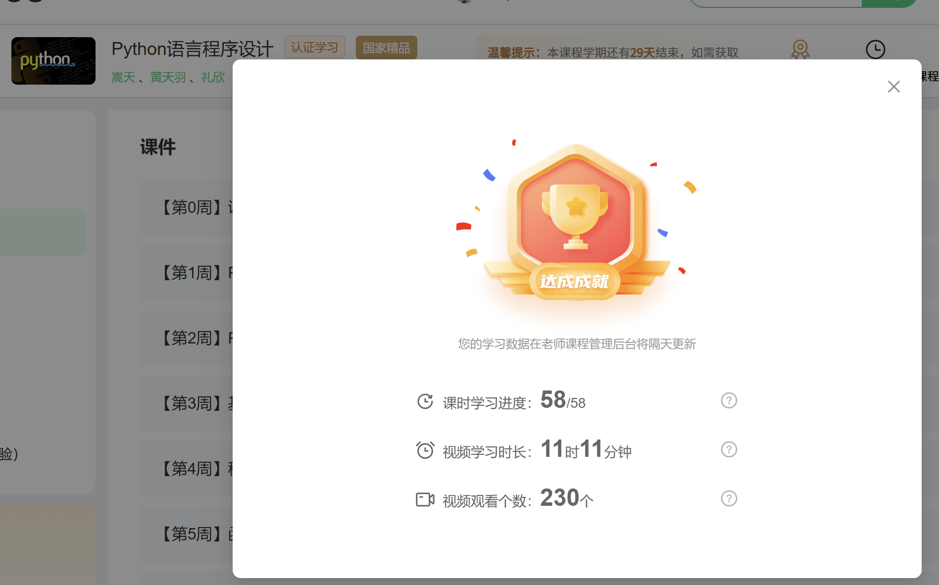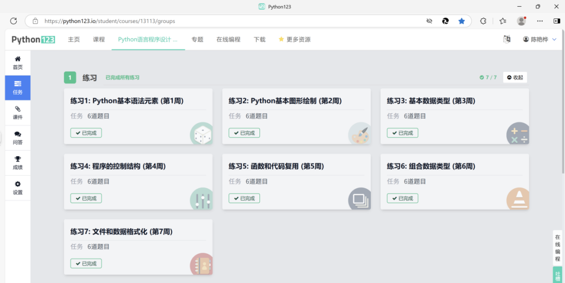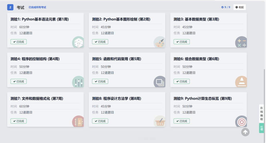 在中国大学慕课MOOC网上《Python语言程序设计》,目前的视频内容学完。