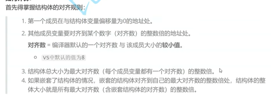 - 放:第一个成员从偏移量为0开始,其他成员所放位置的偏移量为对齐数的倍数。