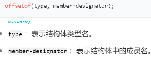 6,offsetof()宏 用来计算对于成员的偏移量,头文件:<stddef.h>