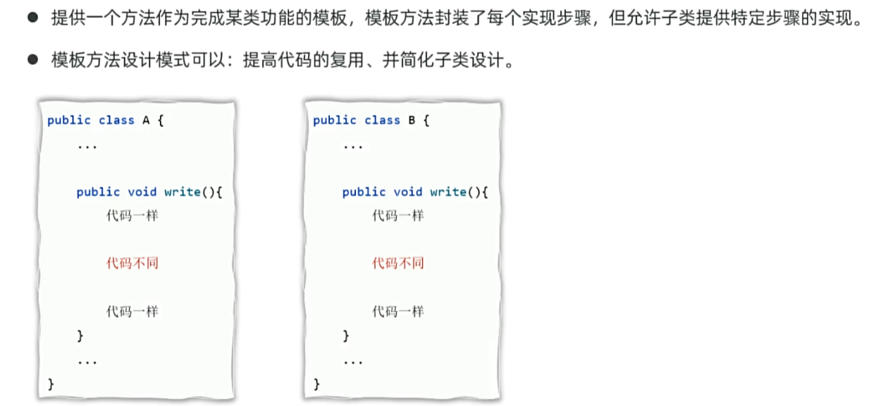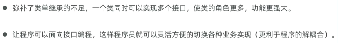 4、抽象类体现模板思想:更利于做父类,实现代码的复用性。 最佳实践5、接口更适合做功能的解耦合:解耦合性更强更灵活。 最佳实践