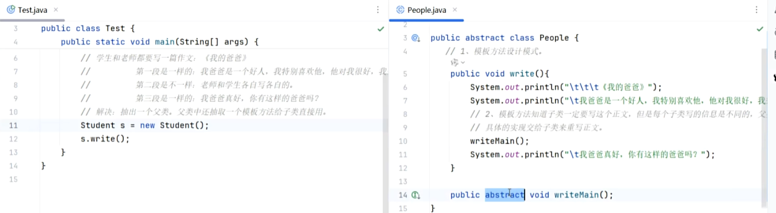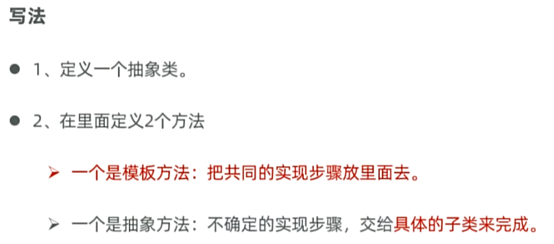 父类知道每个子类都要做某个行为,但每个子类具体做法不同时,父类会将该行为定义为抽象方法,交由子类重写实现。设计这样的抽象类,是为了更好地支持多态。