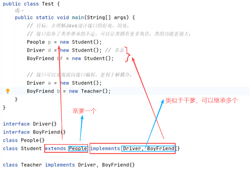 1、接口与接口可以多继承:一个接口可以同时继承多个接口[重点]。