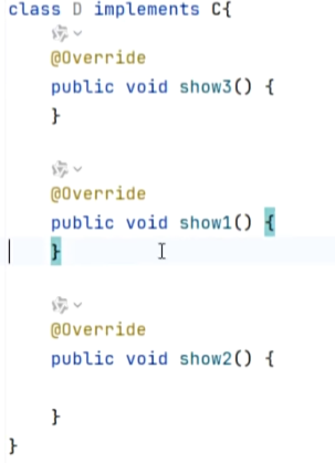 5、一个类实现了多个接口,如果多个接口中存在同名的默认方法,可以不冲突,这个类重写该方法即可。