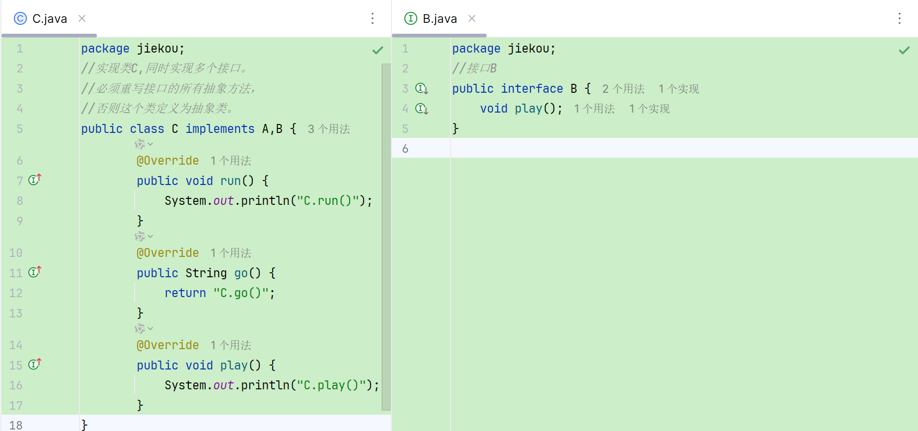 类与接口: 多实现,一个类可以同时实现多个接口。