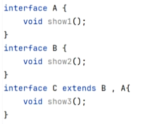接口与接口: 多继承,一个接口可以同时继承多个接口。