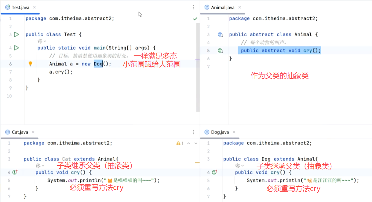 作为父类的Animal也可以是普通类,但不符合最佳实践。