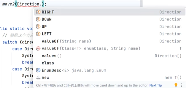 注:switch--case里,会自动去找对应的枚举类是谁,类名.XXX的类名.可以省略