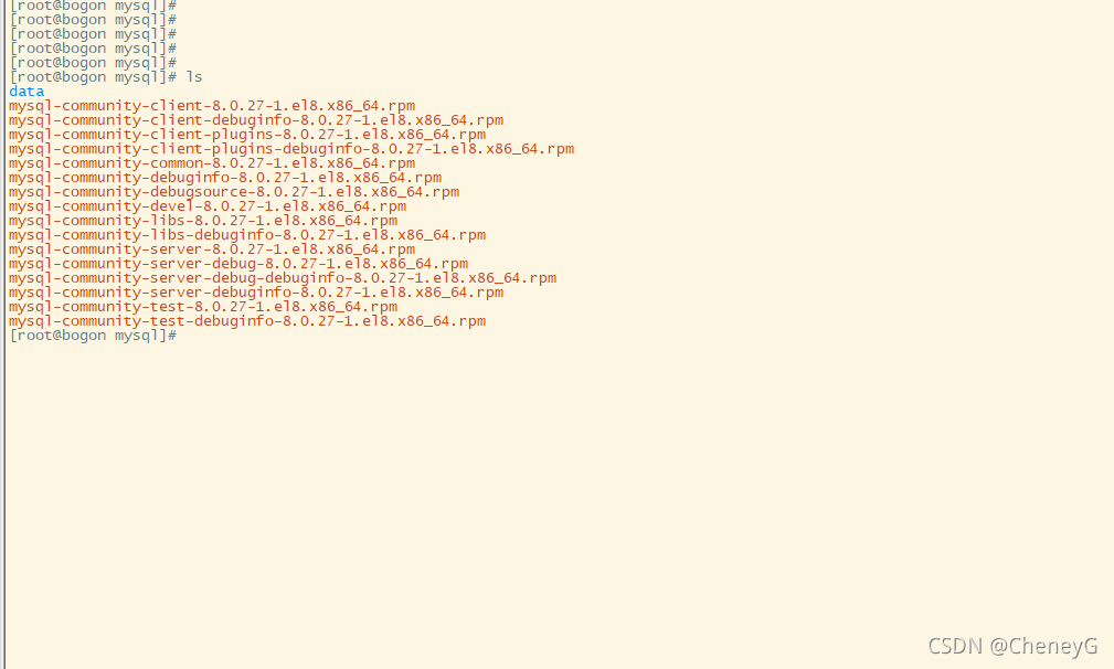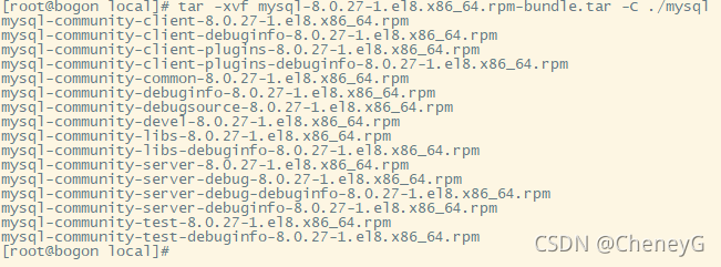 tar -xvf mysql-8.0.27-1.el8.x86_64.rpm-bundle.tar -C ./mysql