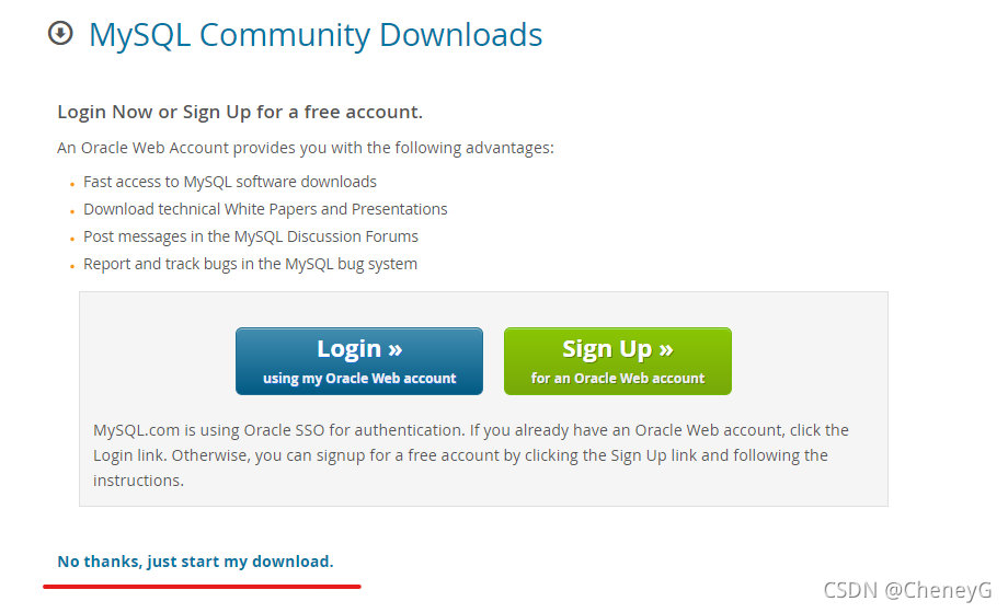 点击后会提示你是否登录,可以点击下方的“No thanks ,Just start my download”按钮跳过登录,直接下载