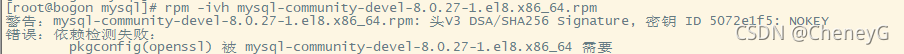 yum install openssl-devel.x86_64 openssl.x86_64 -y然后再执行:rpm -ivh mysql-community-devel-8.0.27-1.el8.x86_64.rpm