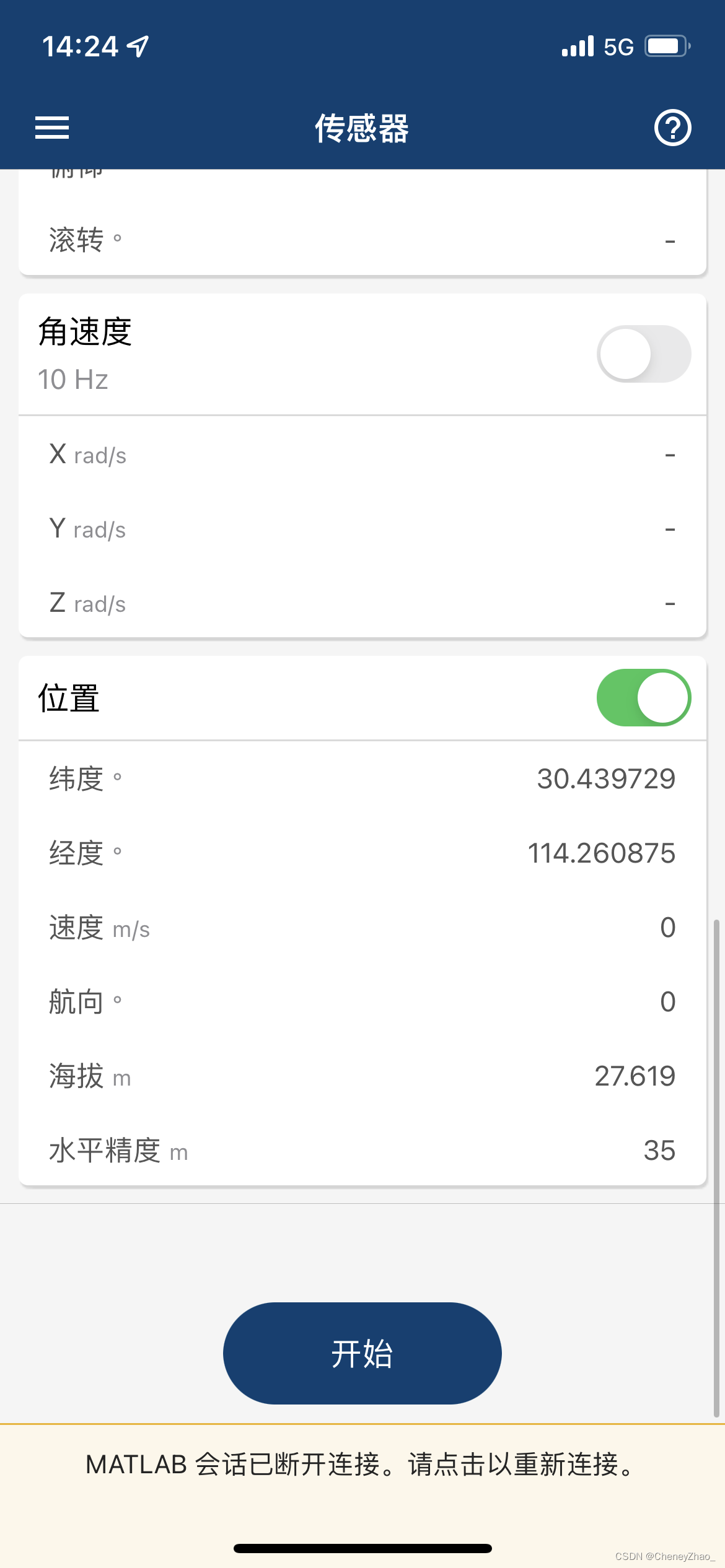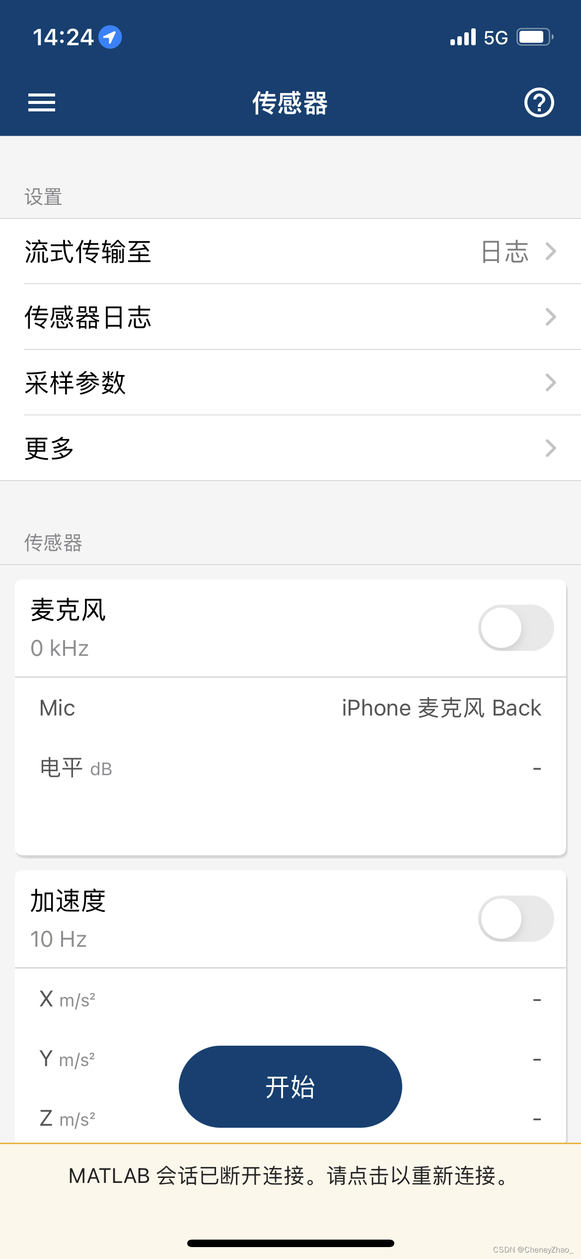 在传感器页面,就可以看到相应的采集页面,点击开始采集。当关闭后,进入MATHWORK官网个人账户(MATLAB Drive),可下载所采集到的内容。