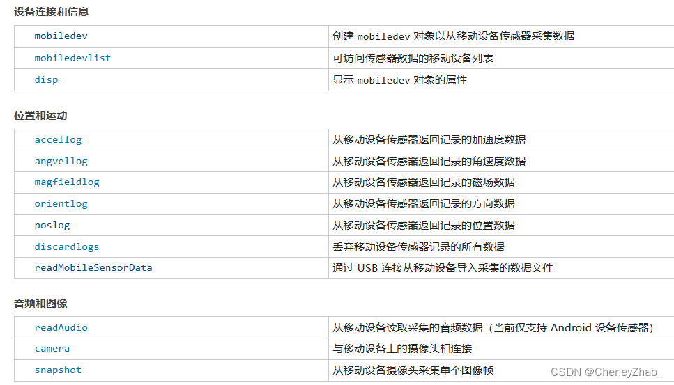得到的m为m是采集传感器数据的 mobiledev 对象的名称,matlab提供了各种在移动端处理所得数据的函数。