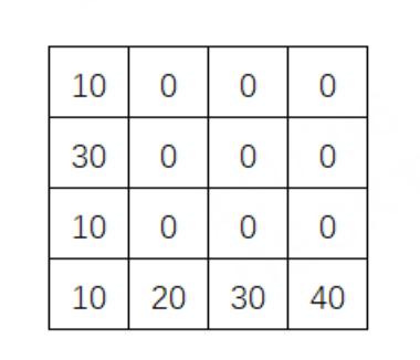 | 输入 | 4,4 10,30,30,20 30,30,20,10 10,20,10,40 10,20,30,40 |