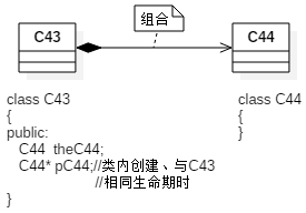 ①一般组合用的是值对象(如theC44,表示其生命期与整体一致)