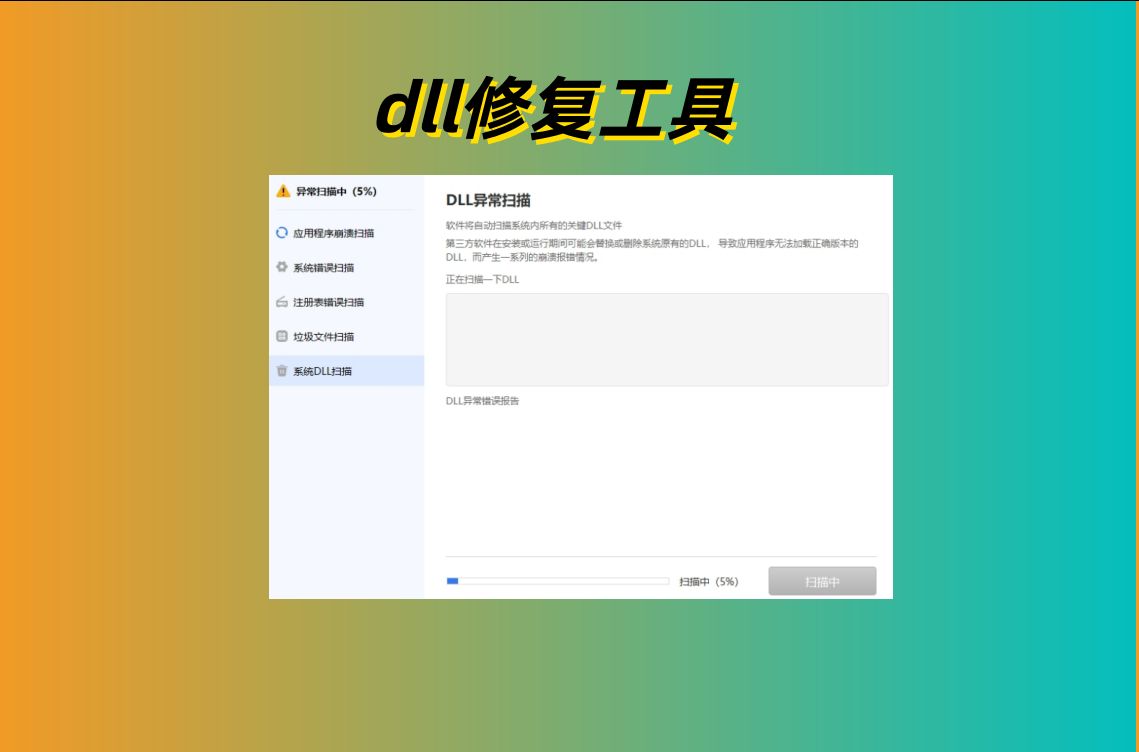 运行工具后点击"扫描",自动检测丢失的dll文件。