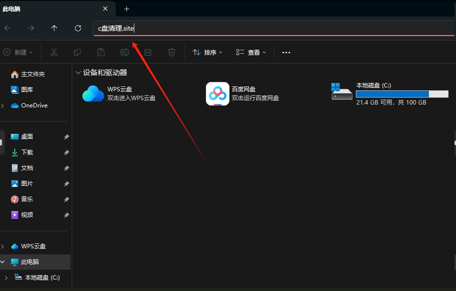 首先打开电脑,进入【此电脑】以后在顶部文件路径栏目输入:c盘清理.site(鼠标移到右侧的箭头点击)或者直接点击回车键(Enter)打开检查工具。