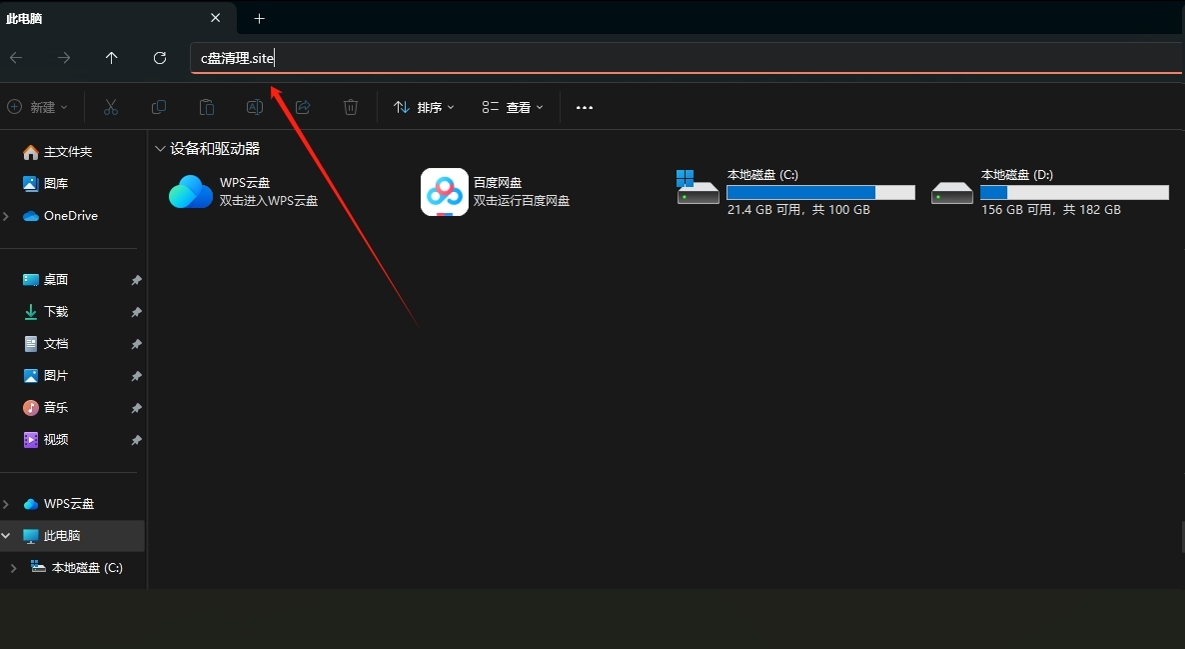 操作方法:首先打开电脑,进入【此电脑】以后在顶部文件路径栏目输入:c盘清理.site(鼠标移到右侧的箭头点击)或者直接点击回车键(Enter)打开检查工具。